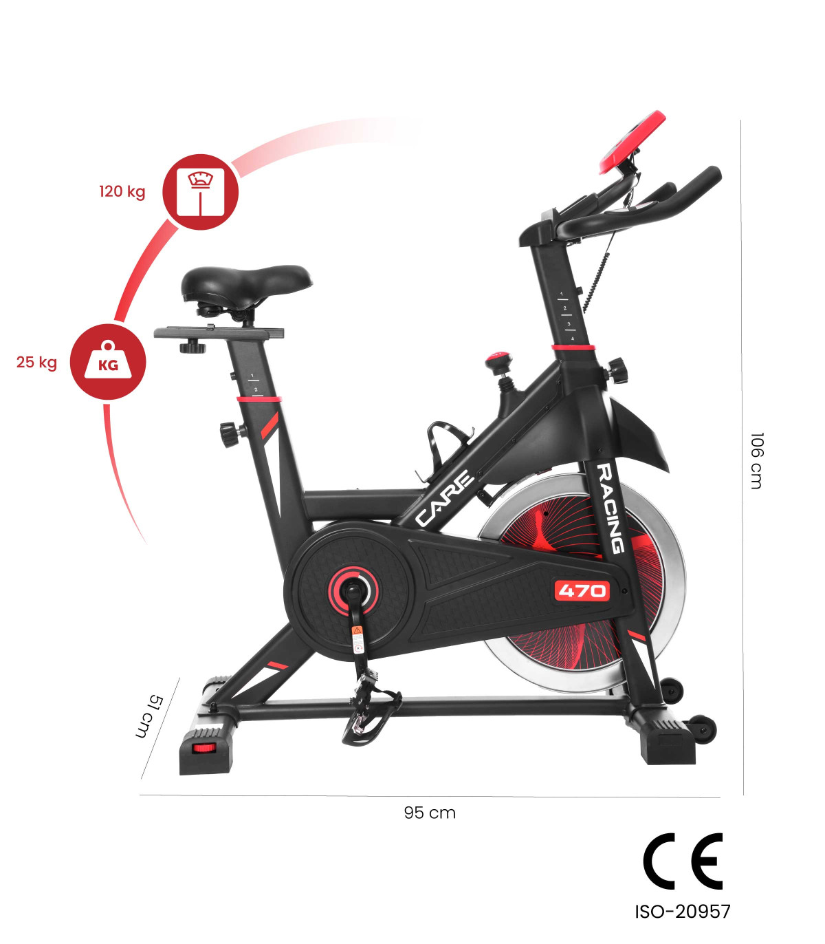 Schwungrad: Das Spinning-Bike Racing 470-475 ist ideal mit seiner Schwungmasse von 12 kg, die es Ihnen ermöglicht, keine Stöße zu spüren und den Widerstand präzise einzustellen
