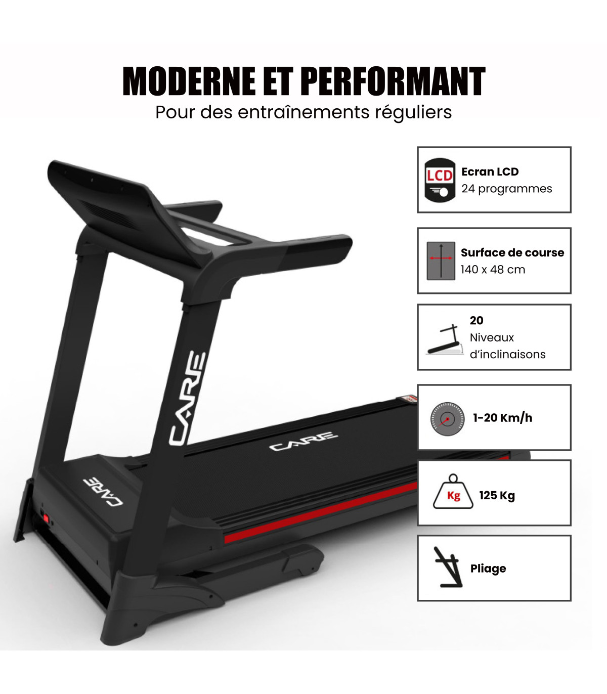 - Geschwindigkeit von 1 bis 20 km/h, ideal für Gehen, Laufen und Sprint
