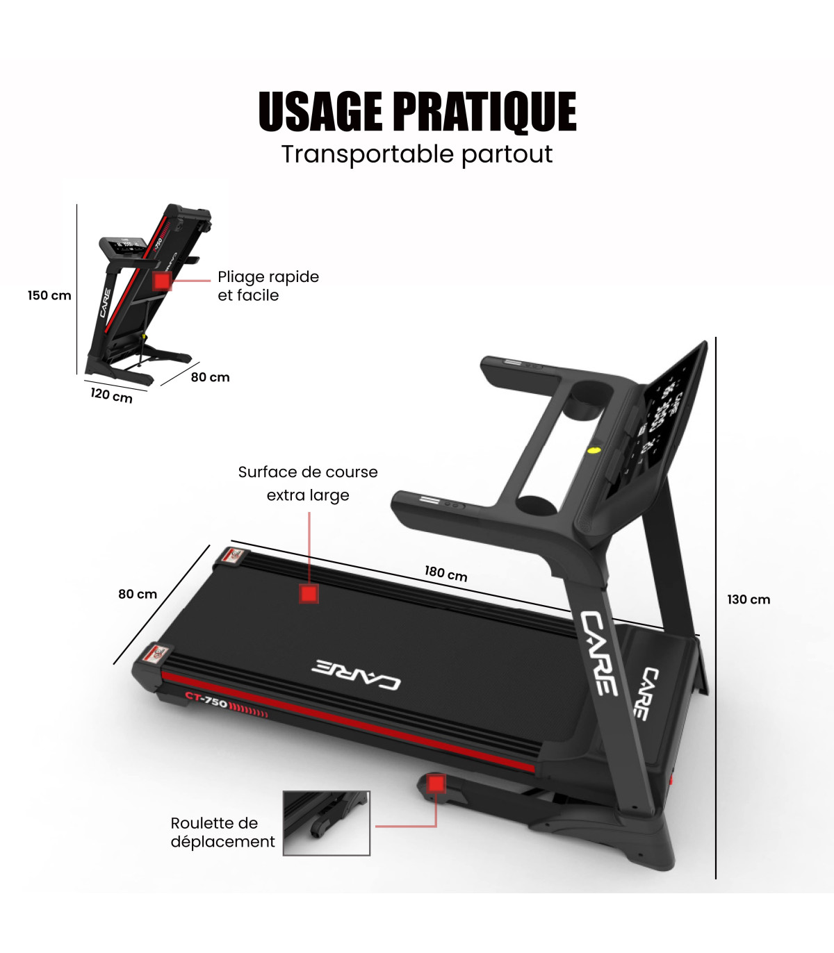 Das CT-750 ist ein komfortables und ergonomisches Laufband, das Ihnen eine angemessene Nutzung und einfache Aufbewahrung bietet: