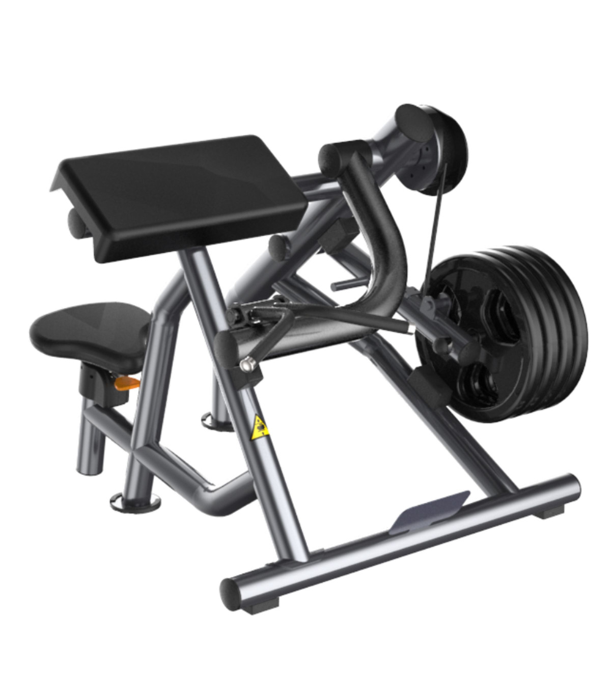 Diese Station mit freien Gewichten wurde entwickelt, um eine perfekte Biomechanik beim Armtraining zu bieten. Der verstärkte Stahlrahmen von 58 kg gewährleistet eine fehlerfreie Stabilität während der konzentrischen Phase der Bewegung. Die kompakten Abmessungen von 121 cm x 136 cm x 142,5 cm Höhe optimieren die Standfläche. Konzipiert für die Aufnahme von Scheiben auf dem Freigewichtsträger, ermöglicht sie eine progressive Überlastung von bis zu 100 kg. Der spezifische Winkel des Pultes eliminiert jegliches Schummeln durch Schwung und erzwingt eine reine Muskelrekrutierung am Bizeps brachii und dem Brachialis. Die Struktur ist durch eine hochfeste Epoxidlackierung geschützt, die maximale Langlebigkeit gegenüber Stößen gewährleistet.