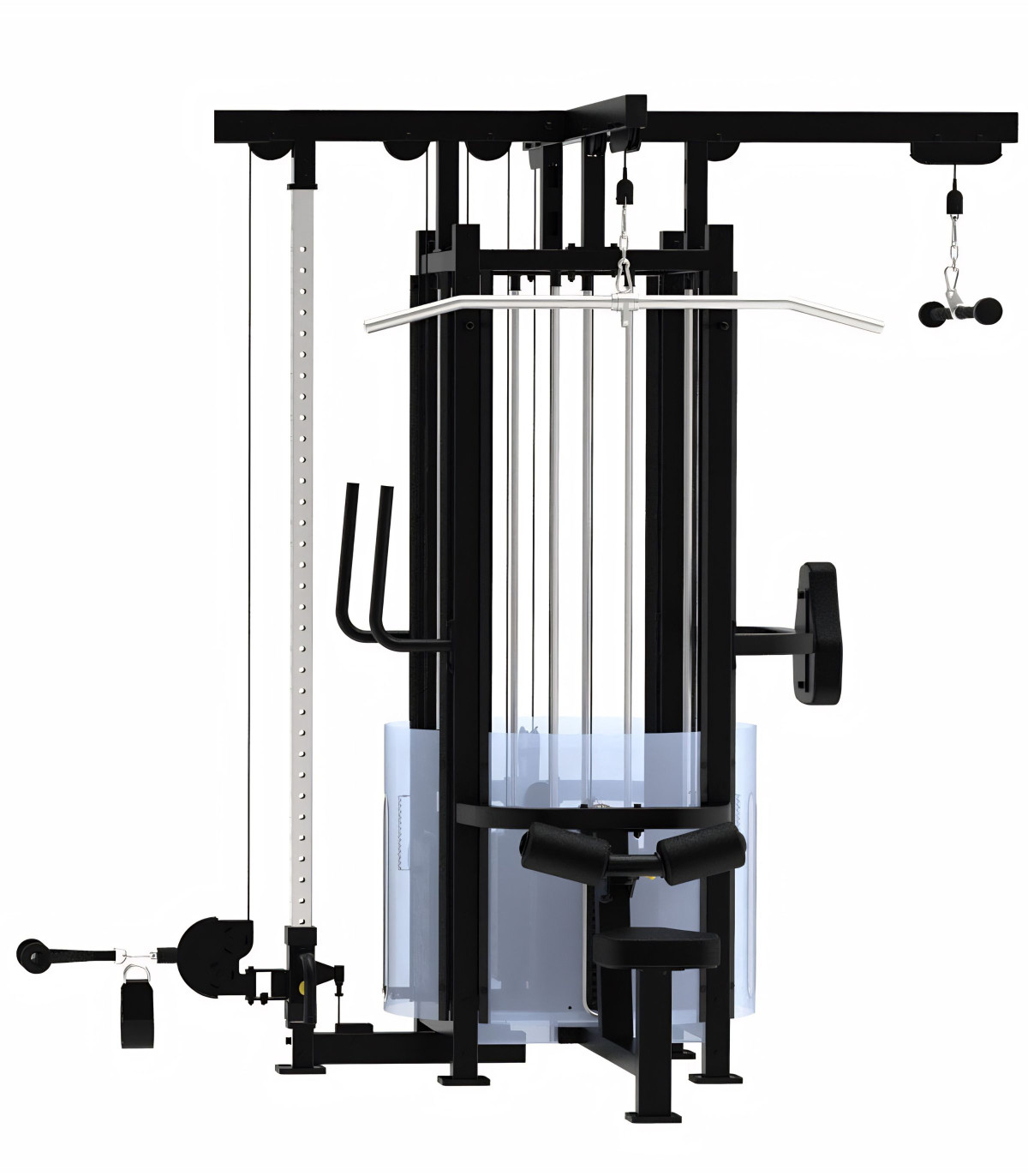 Optimieren Sie jeden Quadratmeter Ihres Clubs oder Home-Gyms mit dem 4-Stationen-Turm. Diese Mehrzweckstation ermöglicht es vier Athleten, gleichzeitig zu trainieren, ohne Kompromisse bei Flüssigkeit oder Platz. Es ist die ultimative Lösung für ein vollständiges Übungsangebot – vom Rückenzug bis zur tiefen Rolle über Trizepsübungen – innerhalb einer einzigen, äußerst kompakten Struktur. Für hohe Belastungen konzipiert, garantiert der stark dimensionierte verstärkte Stahlrahmen unerschütterliche Stabilität.