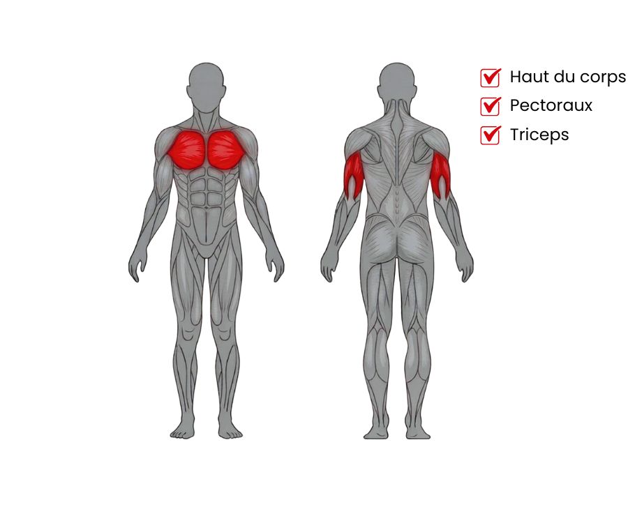Das Training auf dieser Schrägbank ist unerlässlich, um muskuläre Ungleichgewichte zu korrigieren und eine vollständige Definition des großen Brustmuskels zu erzielen. Durch die Veränderung des Druckwinkels reduzieren Sie die Spannung auf die vorderen Deltamuskeln, während Sie die Beanspruchung des unteren Teils der Brustmuskeln und der Trizeps erhöhen. Die Konfiguration mit zwei Stangenablagen ermöglicht es, den Stangenausstieg an die Körperbeschaffenheit jedes Einzelnen anzupassen und eine explosive konzentrische Phase in vollständiger Sicherheit zu fördern. Dieses Gerät ist das ideale Werkzeug für athletische Kraftprotokolle und ermöglicht die Verwendung von Kurzhanteln oder schweren Stangen. Die durch die Beinführung an den Rollen gebotene Stabilität ermöglicht es, sich ausschließlich auf die Kontraktion der gezielten Muskelfasern zu konzentrieren. Das offene Rahmendesign erleichtert den Zugang für einen Trainingspartner bei Sätzen bis zum Muskelversagen.