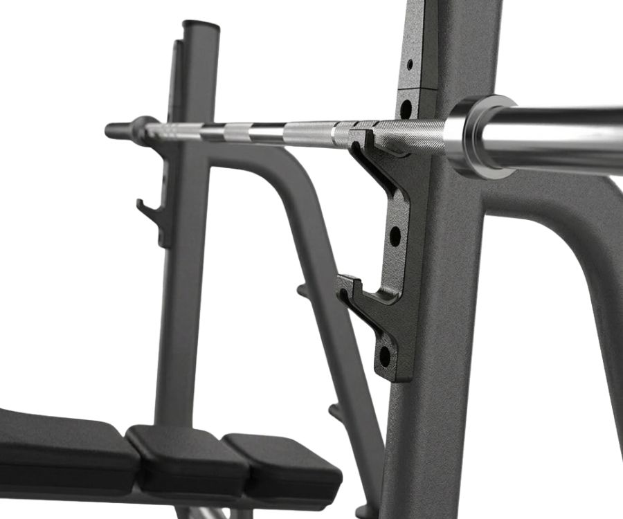 Die 4 integrierten Gewichtsspeicher sind für die Aufnahme von olympischen Standardscheiben mit einem Durchmesser von 50 mm ausgelegt und bieten eine geordnete und sichere Aufbewahrungslösung.