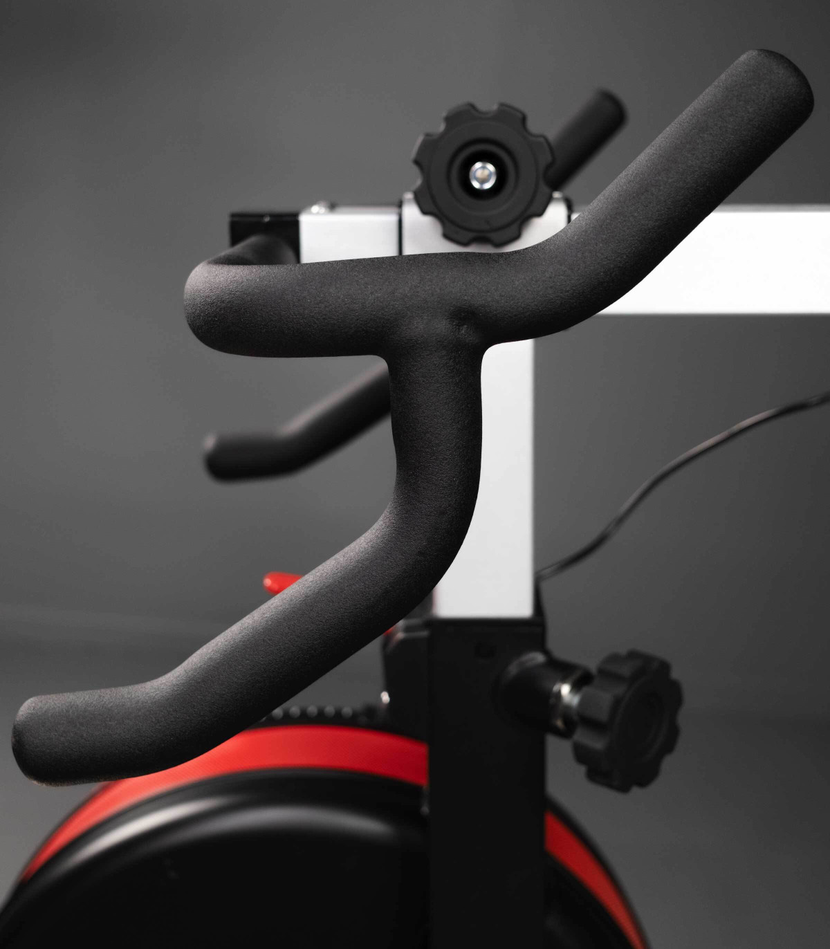 Sein Schwungrad von 7 kg sorgt für eine flüssige Rotation, während der Antriebsriemen Vibrationen und Geräusche reduziert. Konzipiert für Leistung: verstellbarer Triathlon-Lenker, höhen- und tiefenverstellbarer Sattel und verstellbarer Tablethalter für Ihre Coaching-Apps.