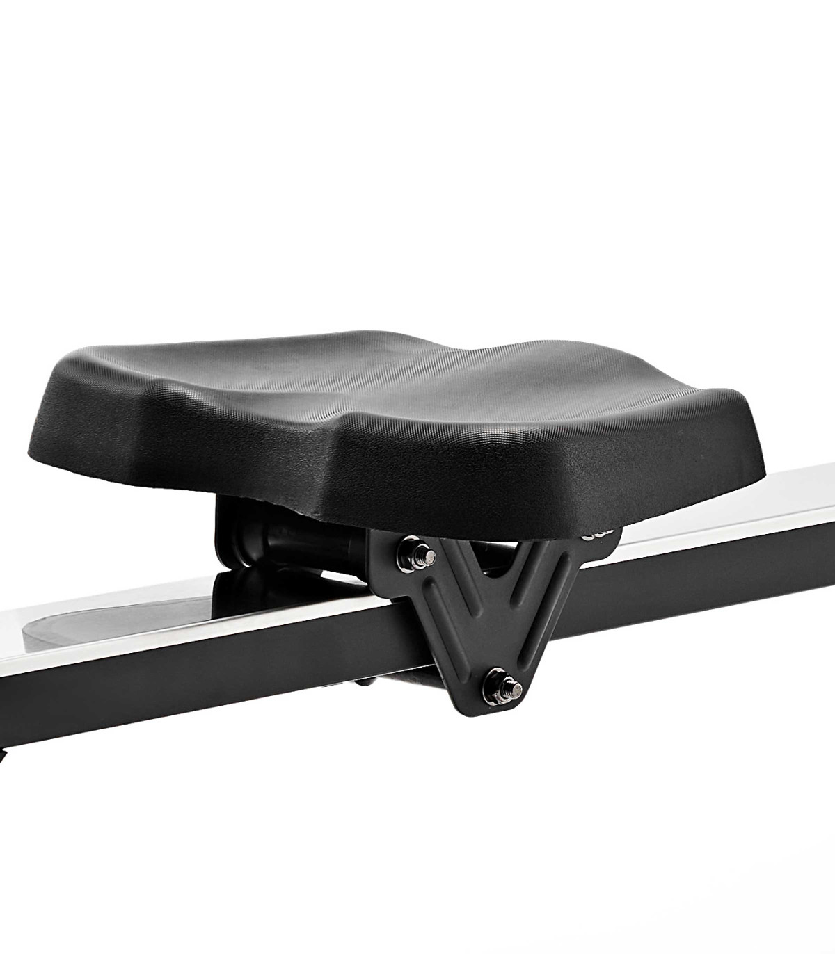 Der CLIPPER Rudergerät vereint Robustheit, Flüssigkeit und Komfort für ein komplettes Training zu Hause. Seine stabile Stahlkonstruktion in Verbindung mit Aluminiumschienen bietet ein perfekt lineares Gleiten des Sitzes. Diese Materialwahl gewährleistet eine bessere Haltbarkeit als eine einfache Stahlschiene, die oft anfälliger für Vibrationen ist.