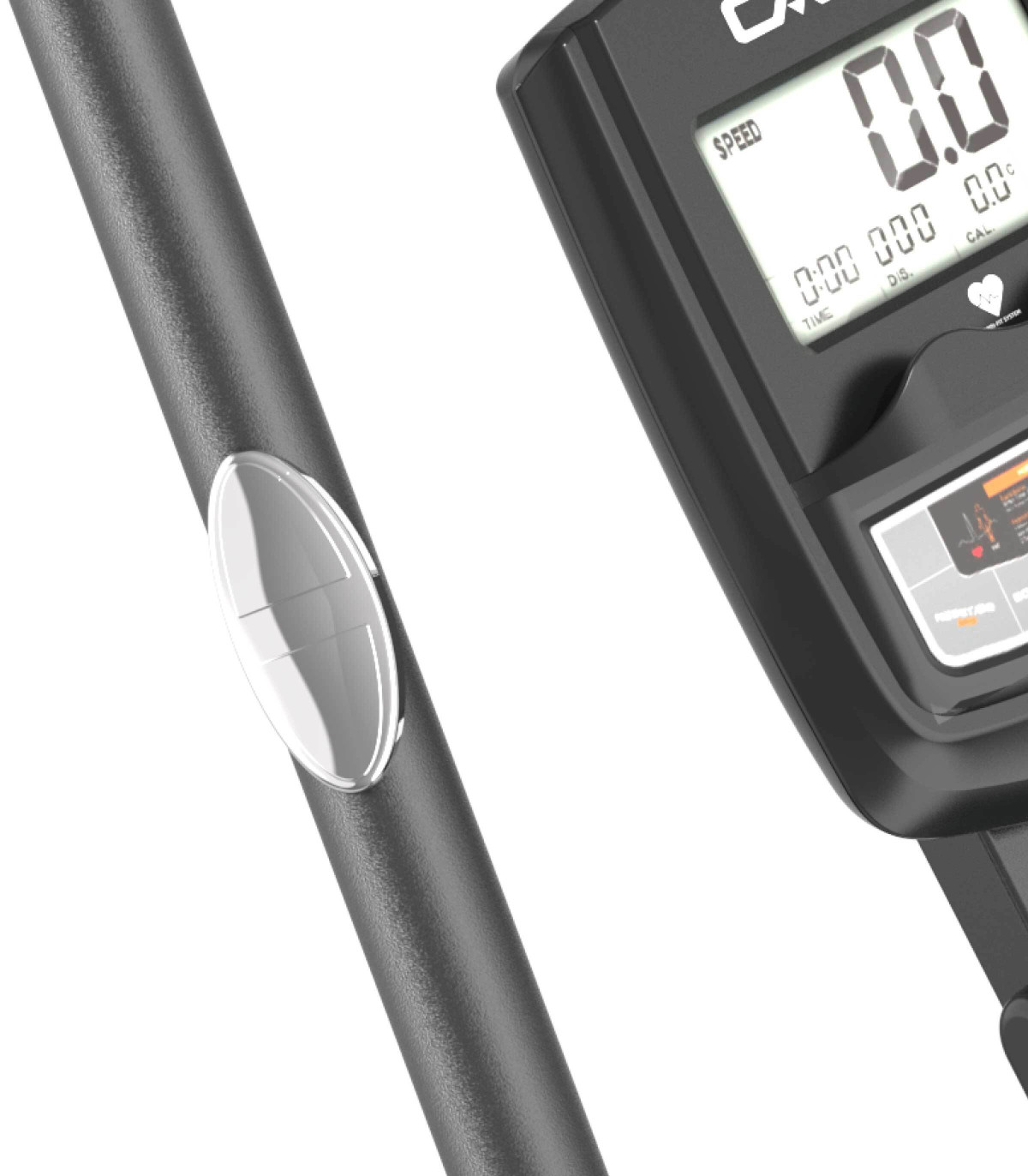Die integrierte LCD-Konsole zeigt wichtige Daten zur Organisation Ihres Trainings an: verstrichene Zeit, zurückgelegte Distanz, RPM (Anzahl der Schritte pro Minute), geschätzte verbrannte Kalorien, BMR (Gesamtanzahl der Schritte während der Trainingseinheit), durch taktile Sensoren gemessene Herzfrequenz sowie die entwickelte Leistung in Watt.