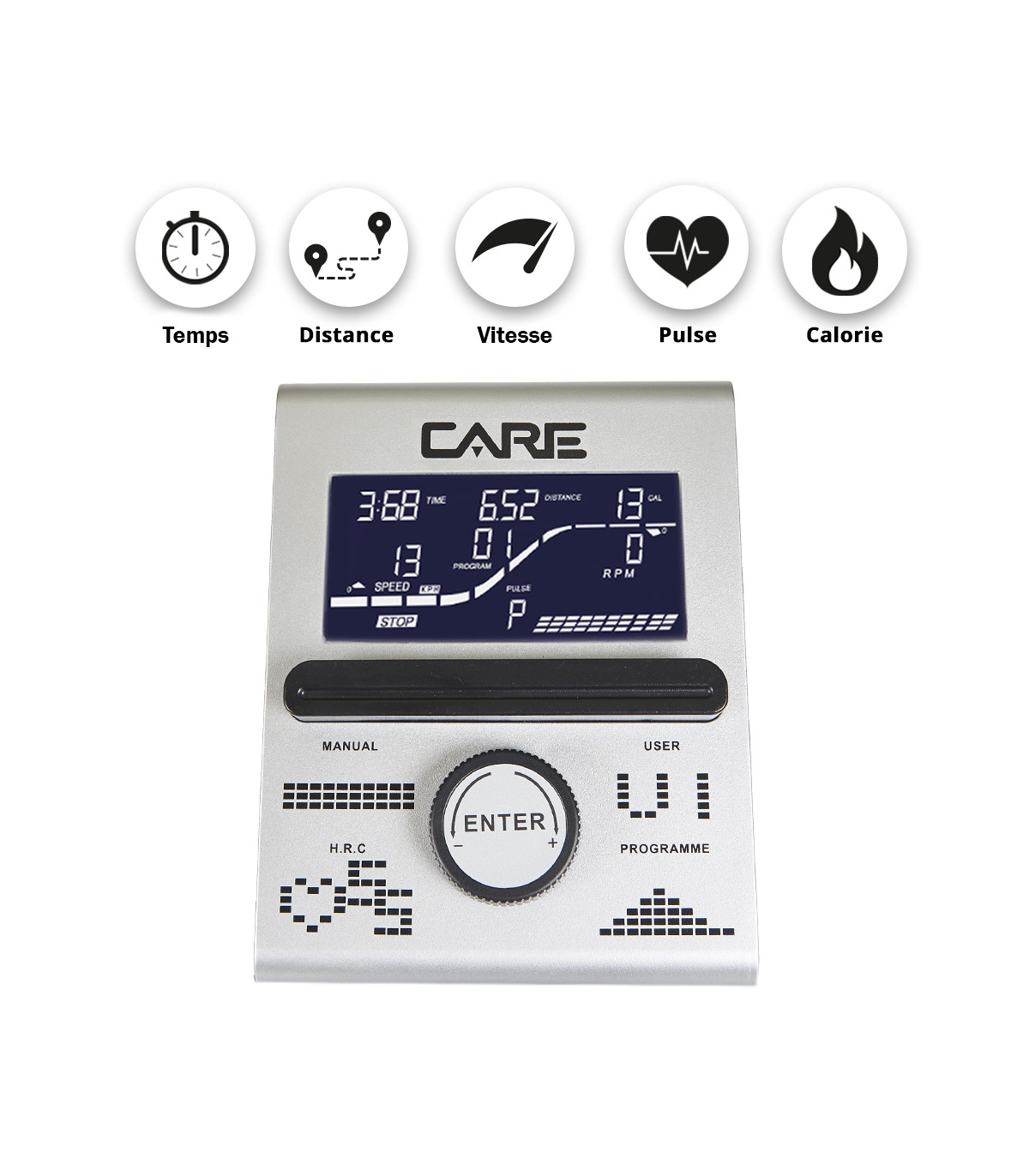 Das MED-528-2 Fahrrad ist mit einer Konsole mit 10 integrierten Funktionen ausgestattet.