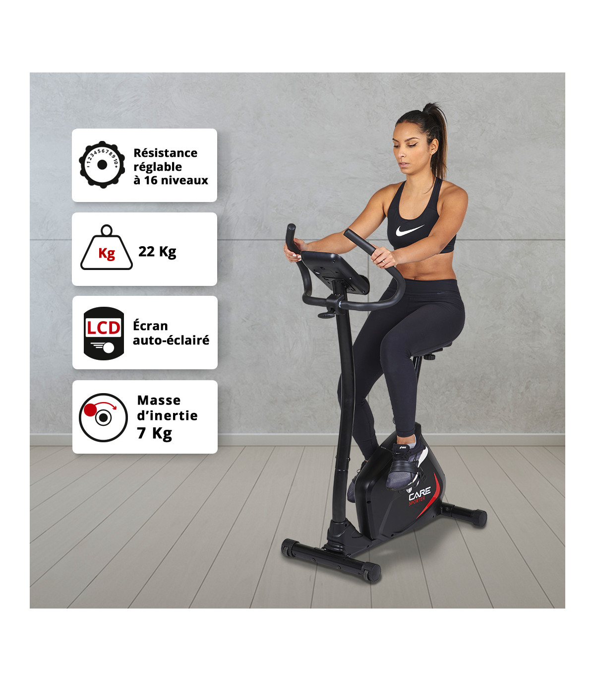 Sehr umfassender Heimtrainer, ausgestattet mit einem magnetischen Widerstandssystem mit 16 Stufen, taktilen Herzfrequenzsensoren (Handpulse) und 21 in den LCD-Zähler integrierten Programmen