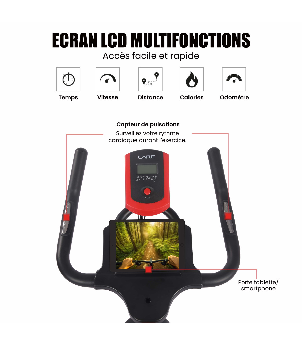 Dieses Spinning-Bike bietet echten Tretkomfort für gelegentliche Nutzung zu Hause. Sein Design ermöglicht Ihnen eine gute Körperhaltung sowie große Stabilität.
