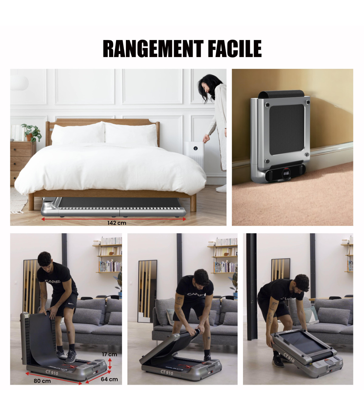 Das CT-910 ist ein sowohl komfortables als auch ergonomisches Laufband, das Ihnen eine angemessene Nutzung und einfache Aufbewahrung bietet: