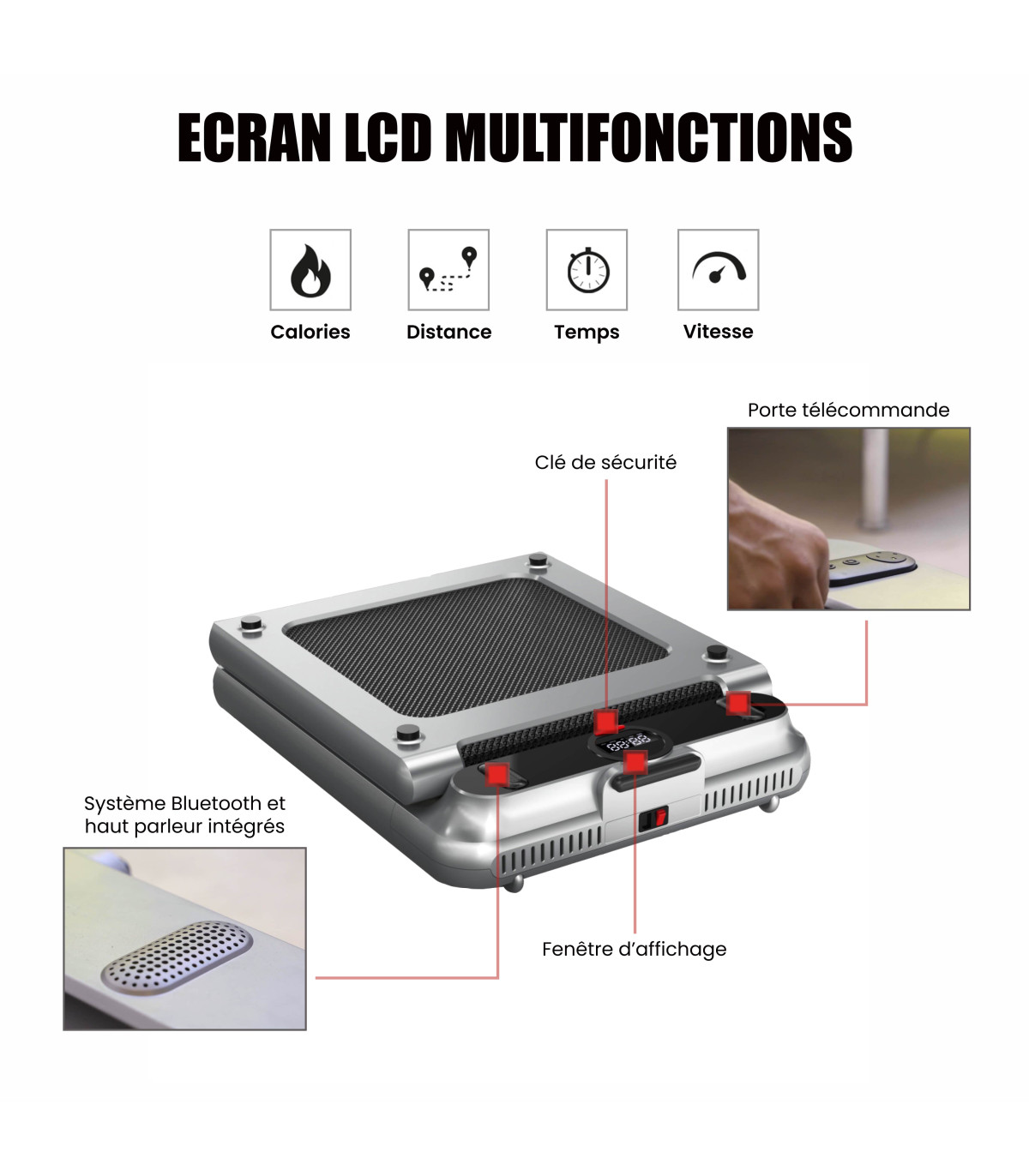- Geschwindigkeit von 0,8 bis 6 km/h, ideal für Gehen und schnelles Gehen