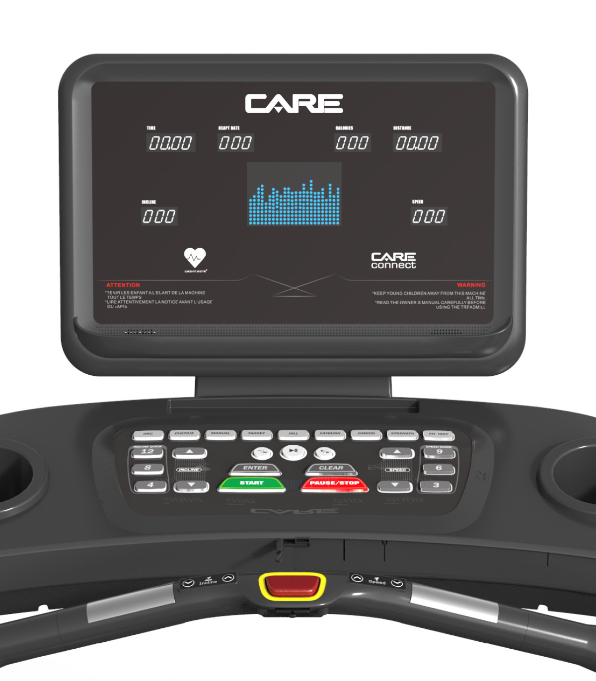 Hochbeständige Struktur. Leistungsstarker, leiser 6-PS-Motor. Kompatibel mit CARE connect Brustgurt.