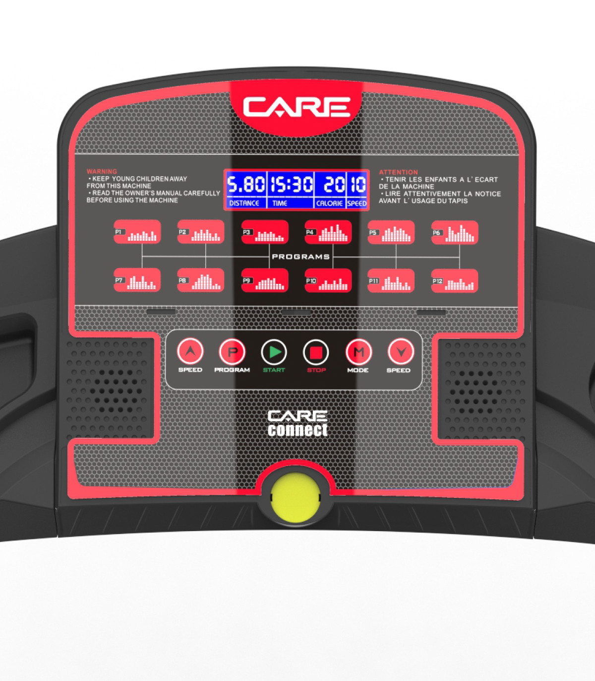 Das Laufband ist mit einer Konsole mit 5 integrierten Funktionen ausgestattet, Programme sind in wenigen Sekunden zugänglich.
